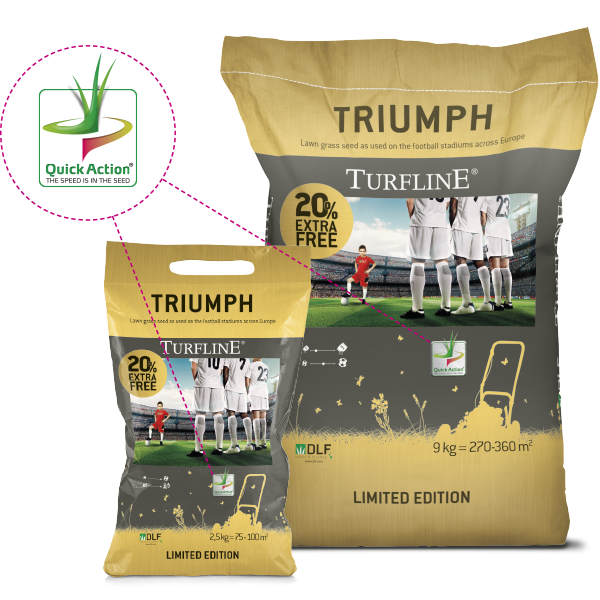 You can now grow the same grass in your own backyard. The Turfline® Triumph limited edition mixture has deep roots and superior genetics, which makes it hardwearing and can endure even the most active garden use. The Turfline® Triumph mixture also contains Quick Action® seeds. Quick Action® gives a quick germination, which means that you will get a green lawn much quicker.